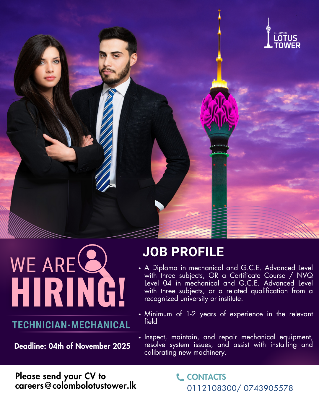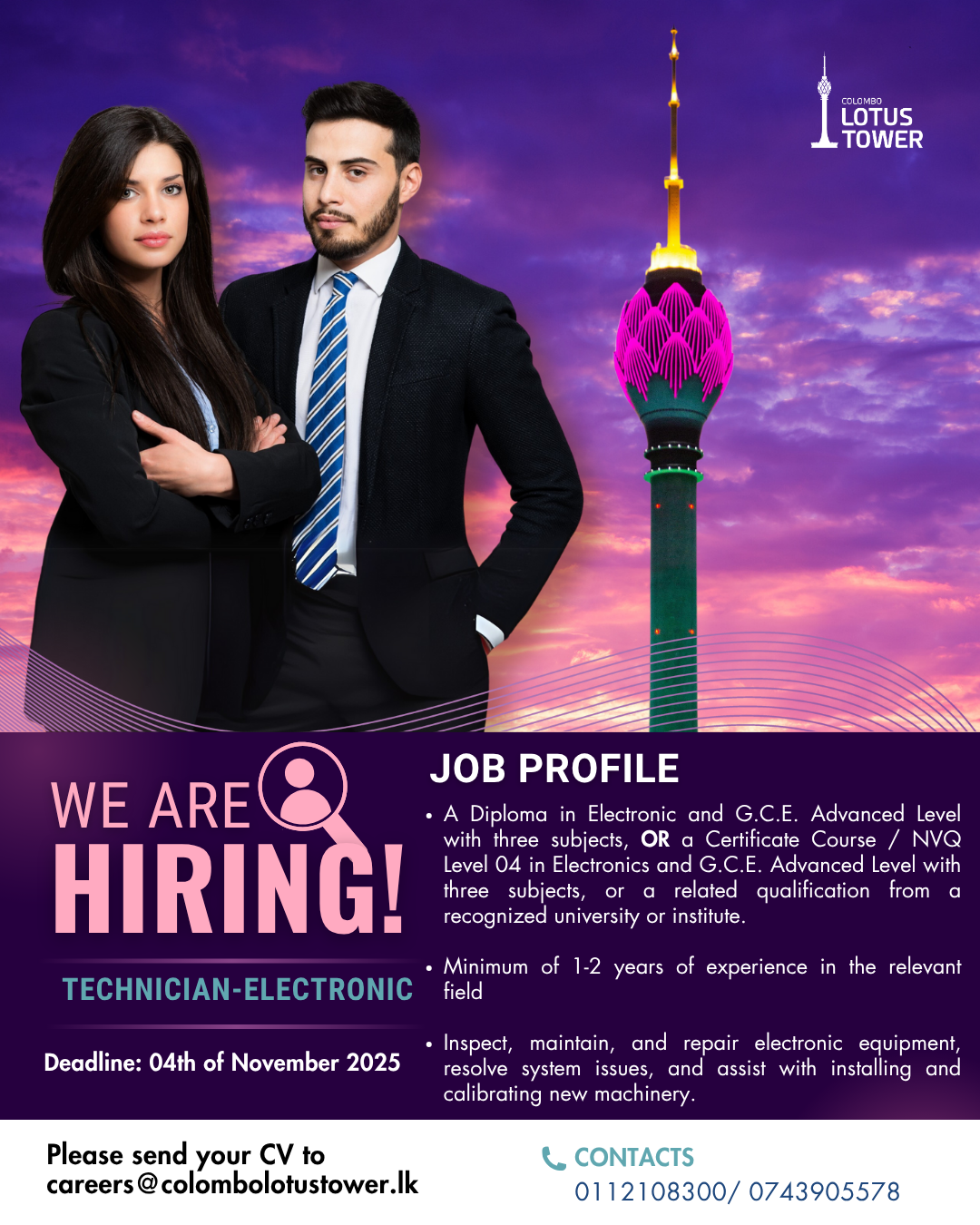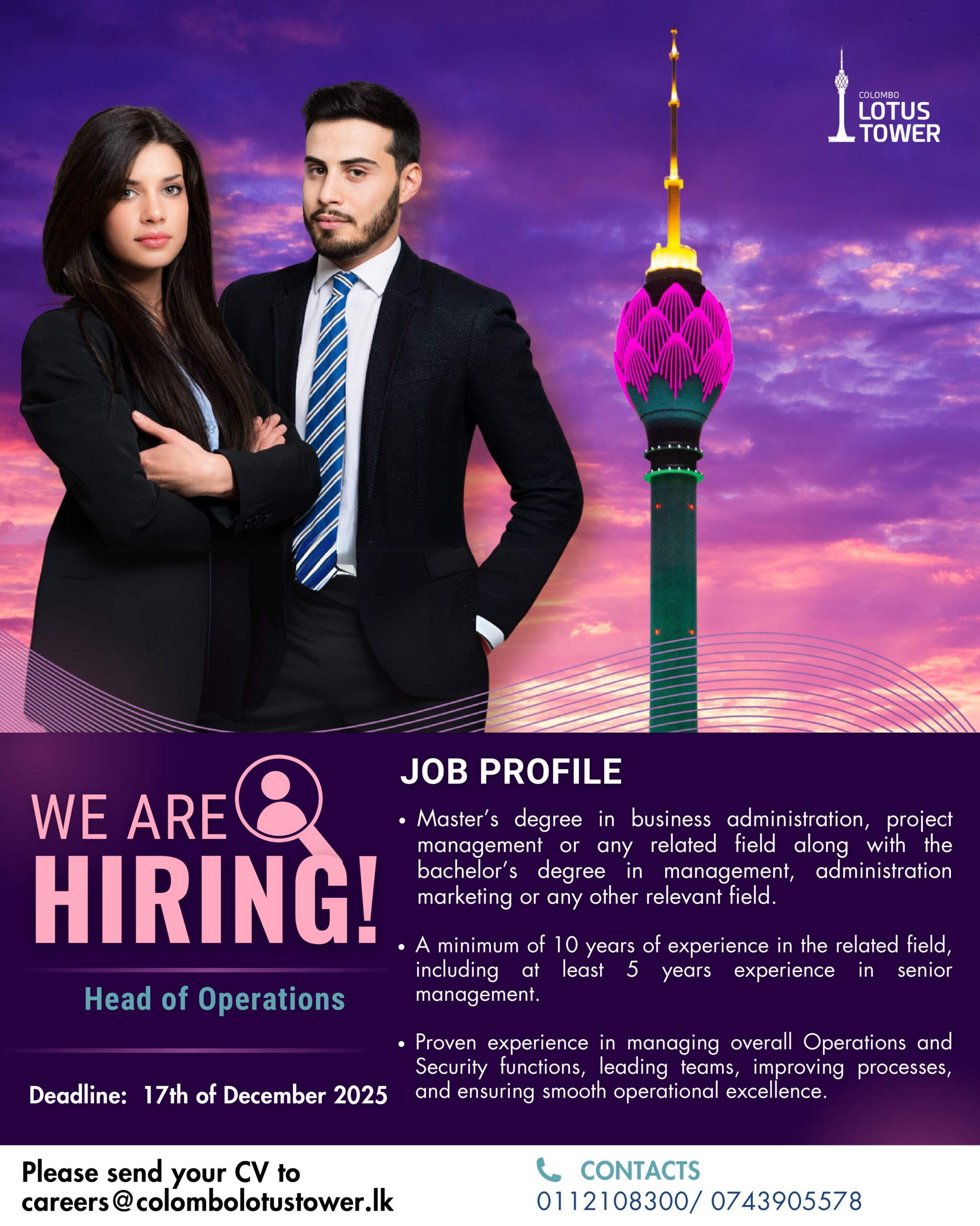 The Colombo Lotus Tower aims to foster a team eager to constantly learn and grow. Our team is young, versatile and looks forward to adapting to new technologies and challenges. We are always on the lookout for new talent. Are you looking to take the next step in your career?
