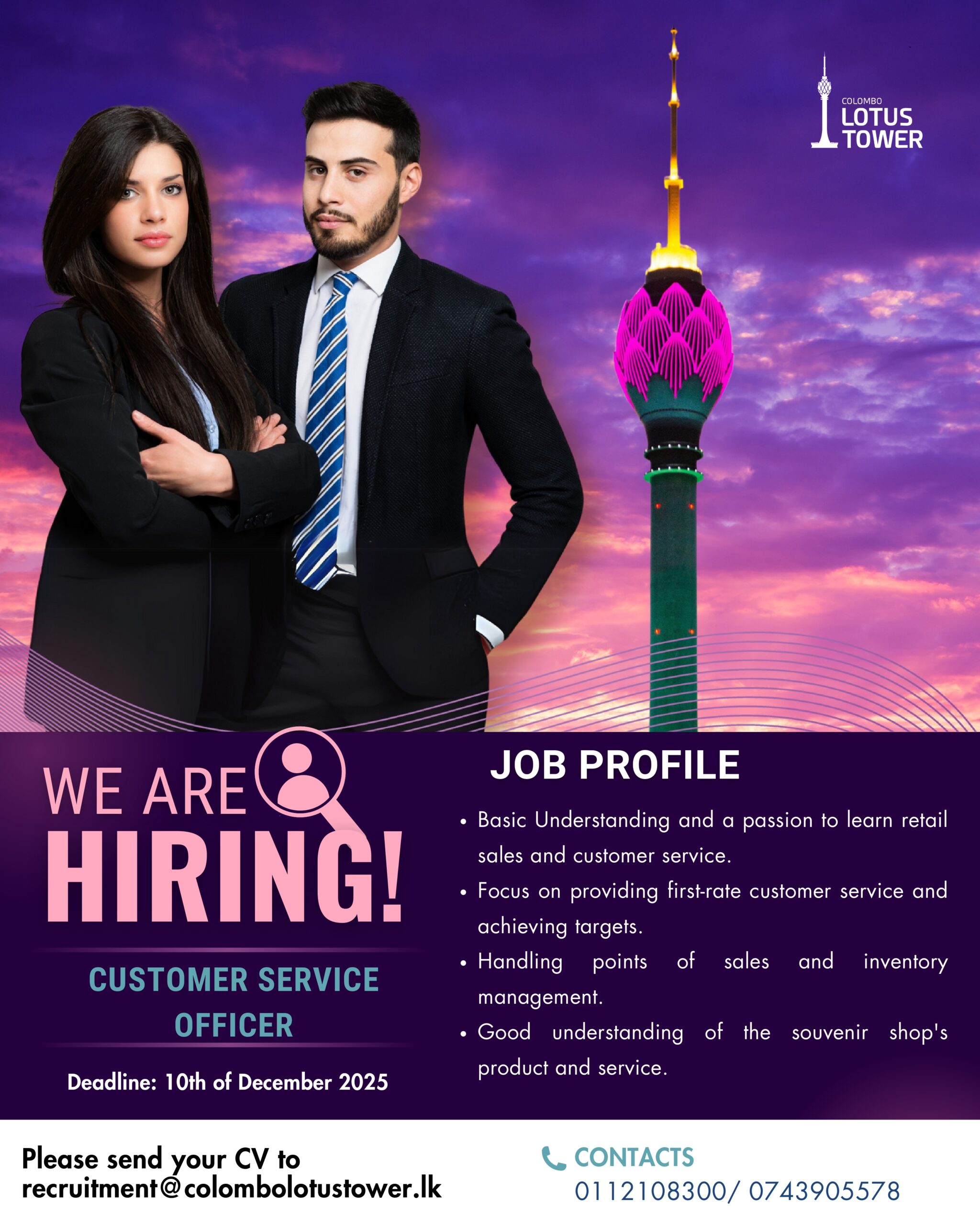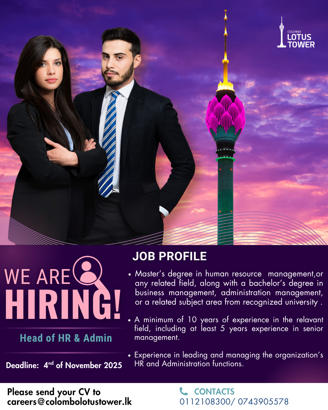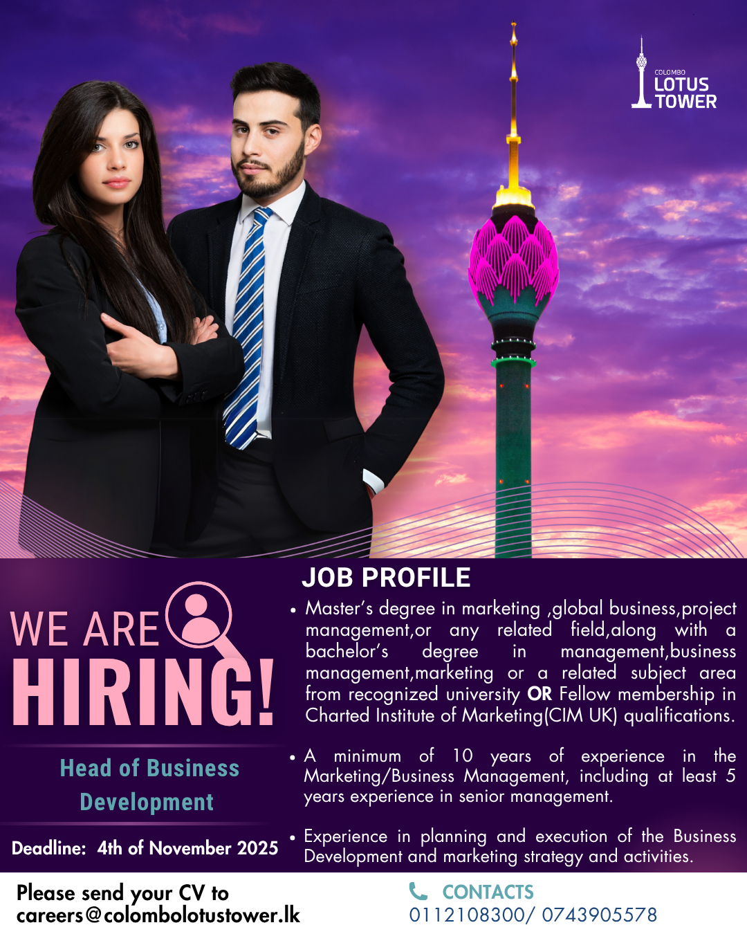 The Colombo Lotus Tower aims to foster a team eager to constantly learn and grow. Our team is young, versatile and looks forward to adapting to new technologies and challenges. We are always on the lookout for new talent. Are you looking to take the next step in your career?