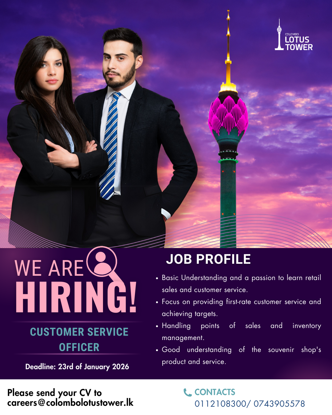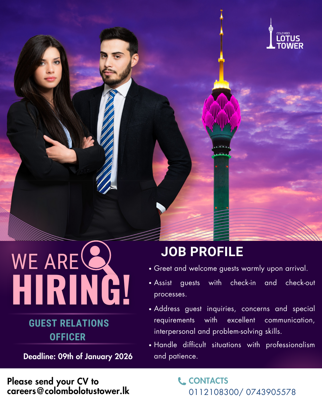 The Colombo Lotus Tower aims to foster a team eager to constantly learn and grow. Our team is young, versatile and looks forward to adapting to new technologies and challenges. We are always on the lookout for new talent. Are you looking to take the next step in your career?